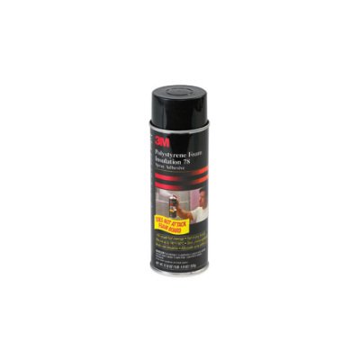 3M - Polystyrene Foam Insulation 78 Adhesive. A high solids, high coverage aerosol adhesive designed for bonding most types of insulation such as EPS (expanded polystyrene), XEPS (extruded polystyrene) and fiberglass insulation. Fast drying formula helps speed assembly. Good heat and moisture resistance to help protect bonds. Bonds material to itself as well as concrete, wood, metal, fabrics and most plastics. Ideal surface temperatures for bonding are 60-80 F. 12 Per Case